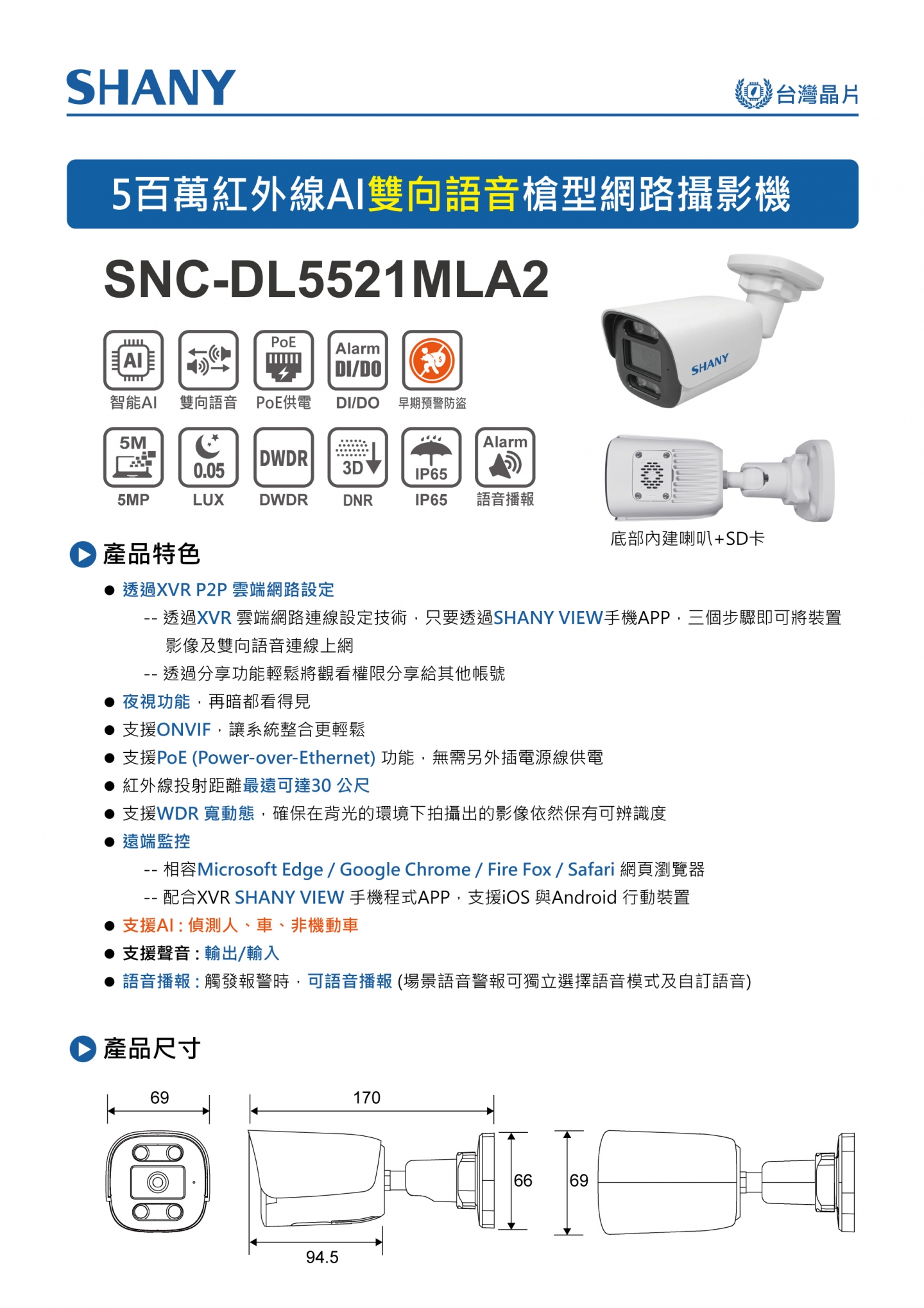 5百萬紅外線AI雙向語音槍型網路攝影機 (型號: SNC-DL5521MLA2 )