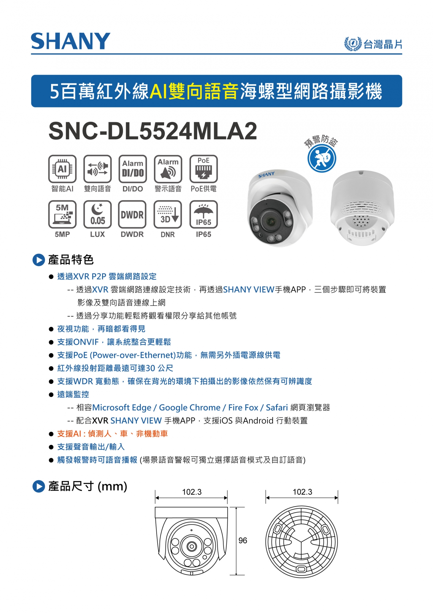 5百萬紅外線AI雙向語音海螺型網路攝影機 (型號: SNC-DL5524MLA2)