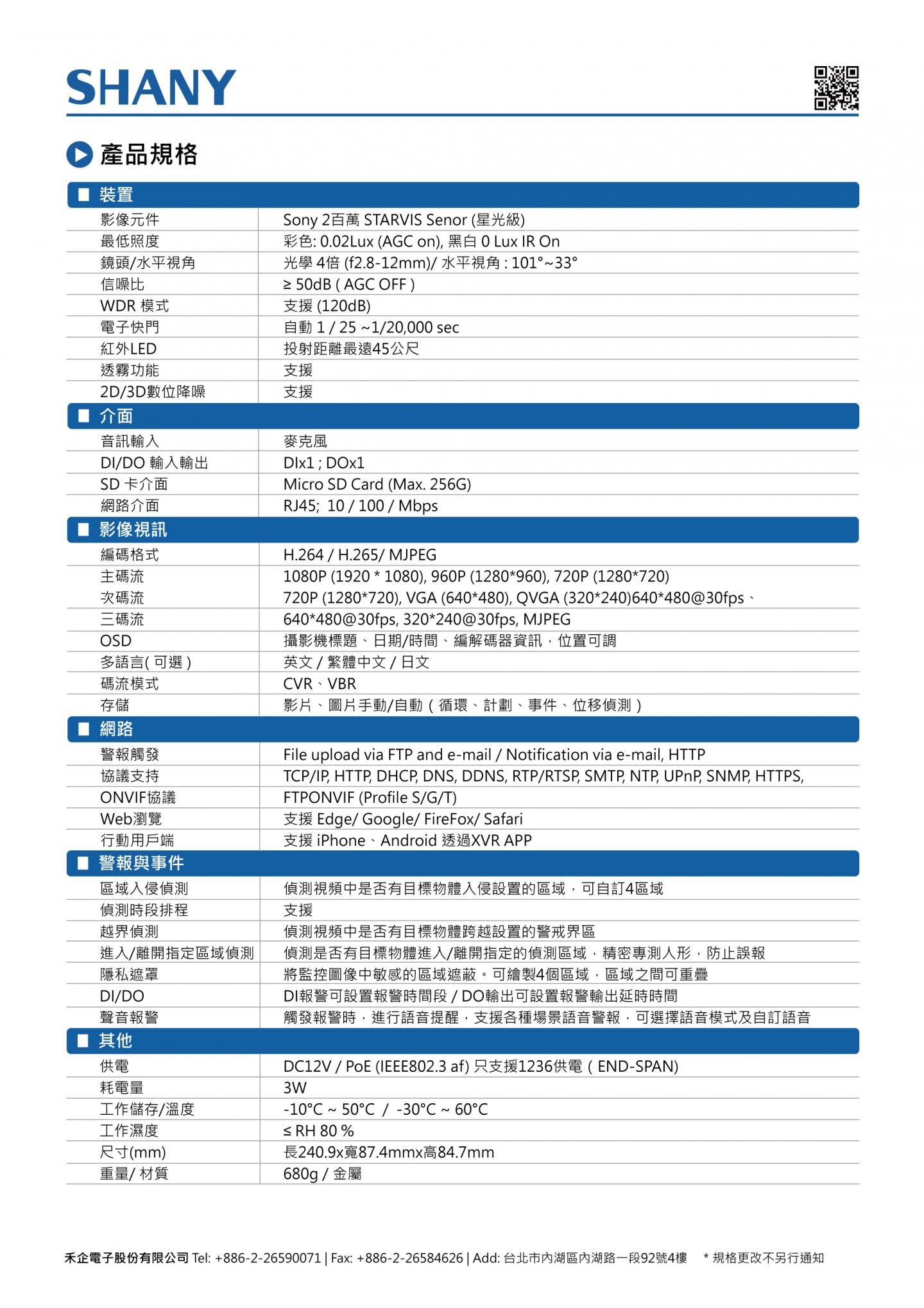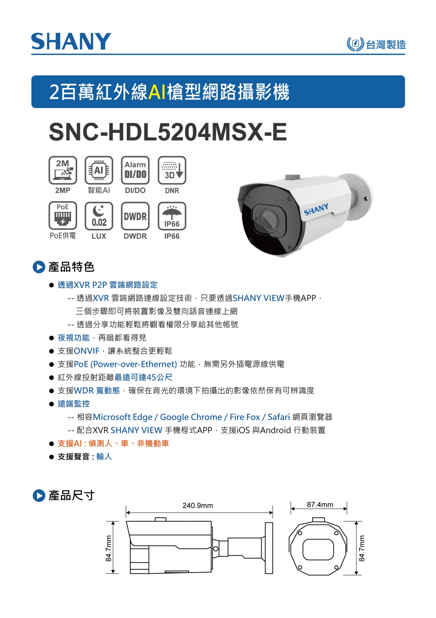 2百萬AI日夜全彩攝影機 (型號:SHC-VSL324S)