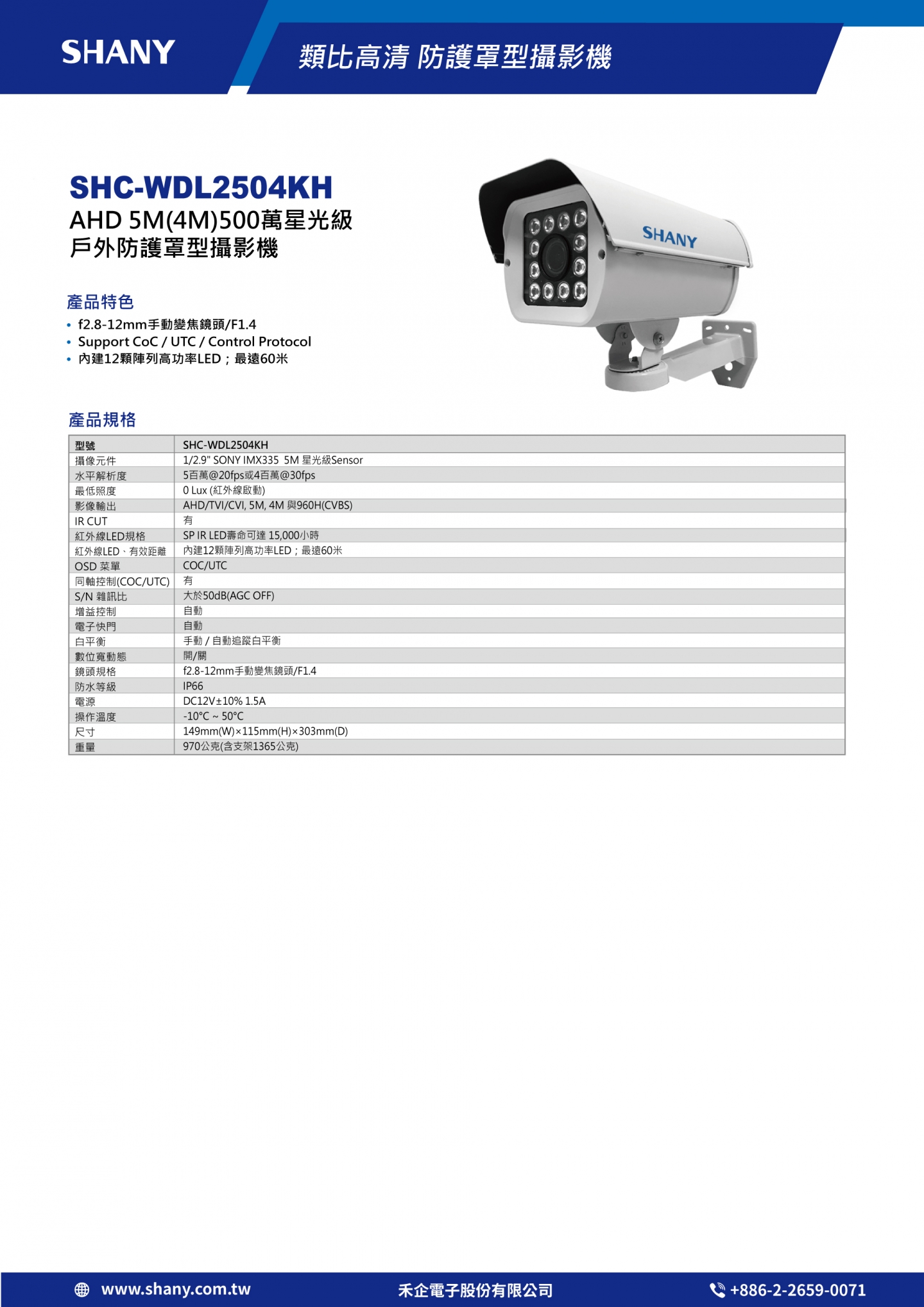 5百萬紅外線定焦防水攝影機 (型號: SHC-L251KAL)