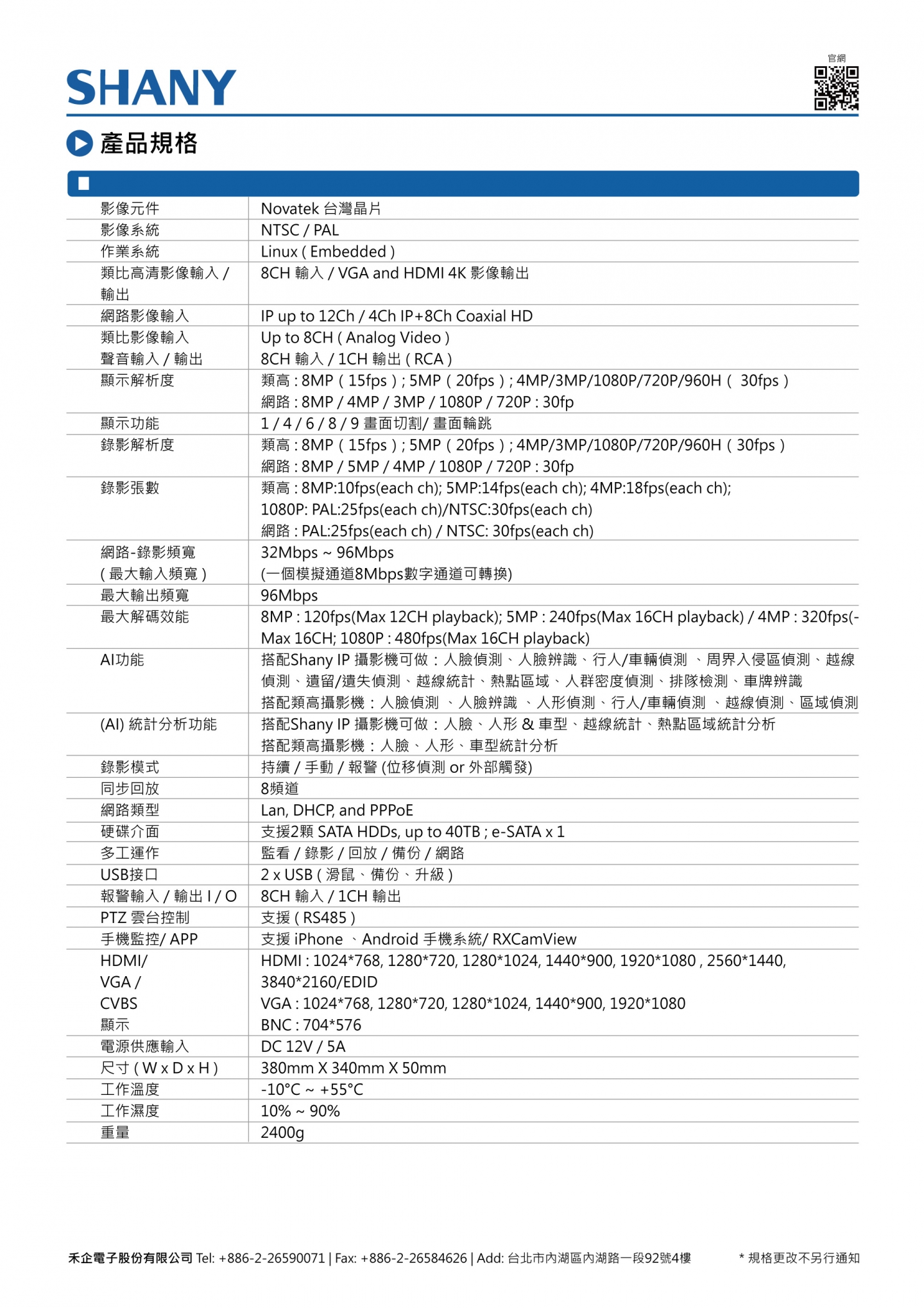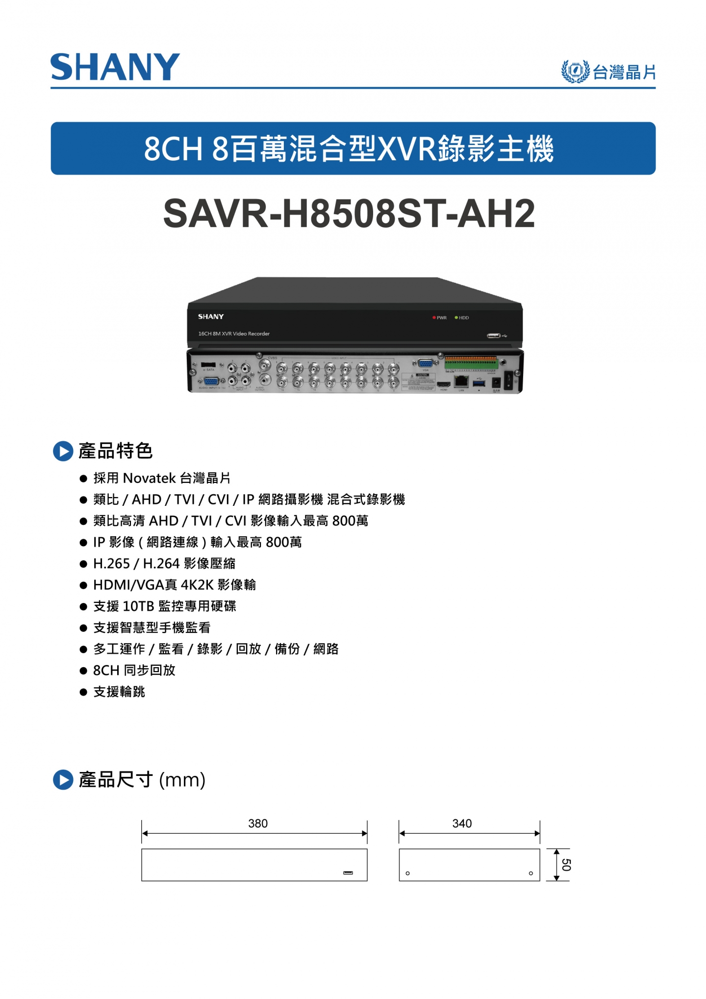 8CH 5百萬混合型 XVR錄影主機 (型號:SAVR-H8208ST-AHL1)
