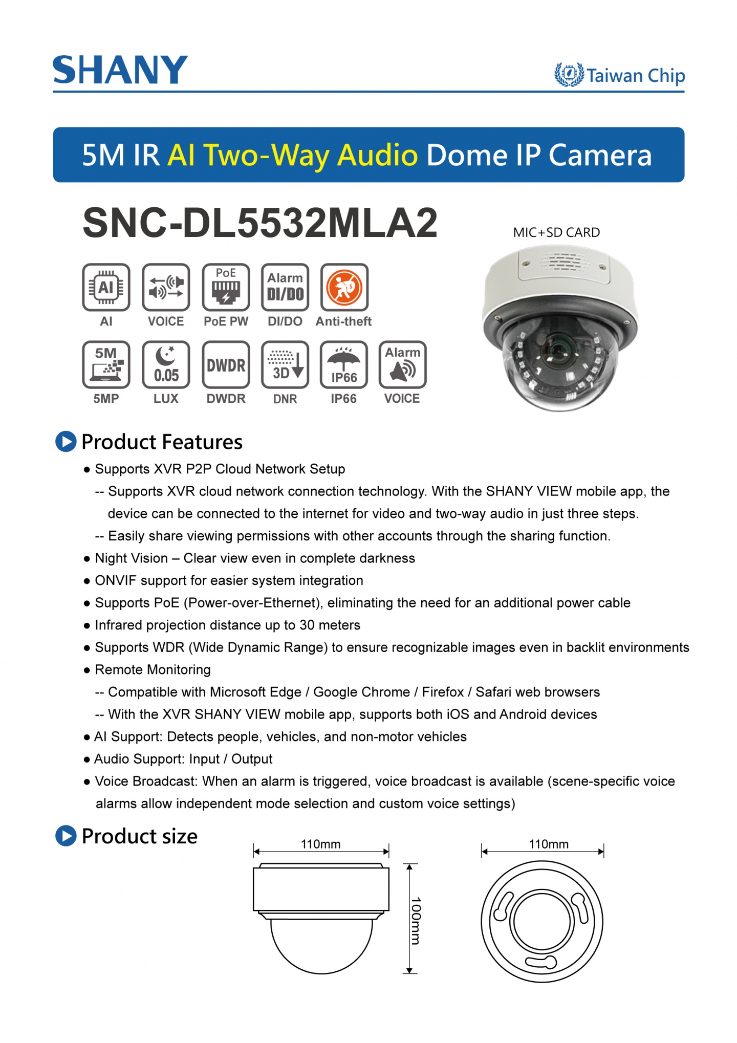 5M IR AI Two-Way Audio Bullet IP Camera (Model: SNC-HDL5532MLA2)
