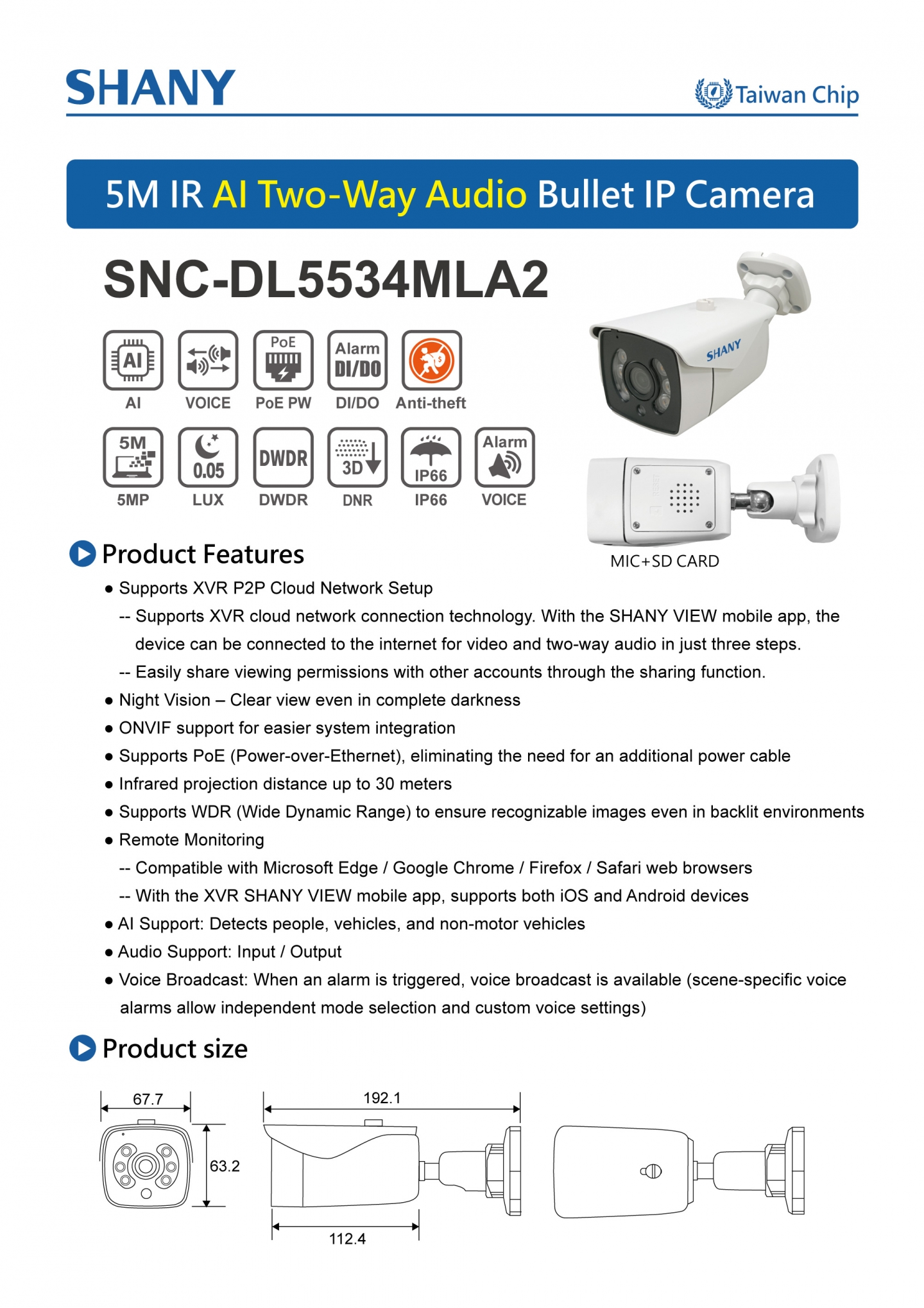 5M Two-Way Audio IR Bullet IP Camera (Model: SNC-HDL5534MLA2)