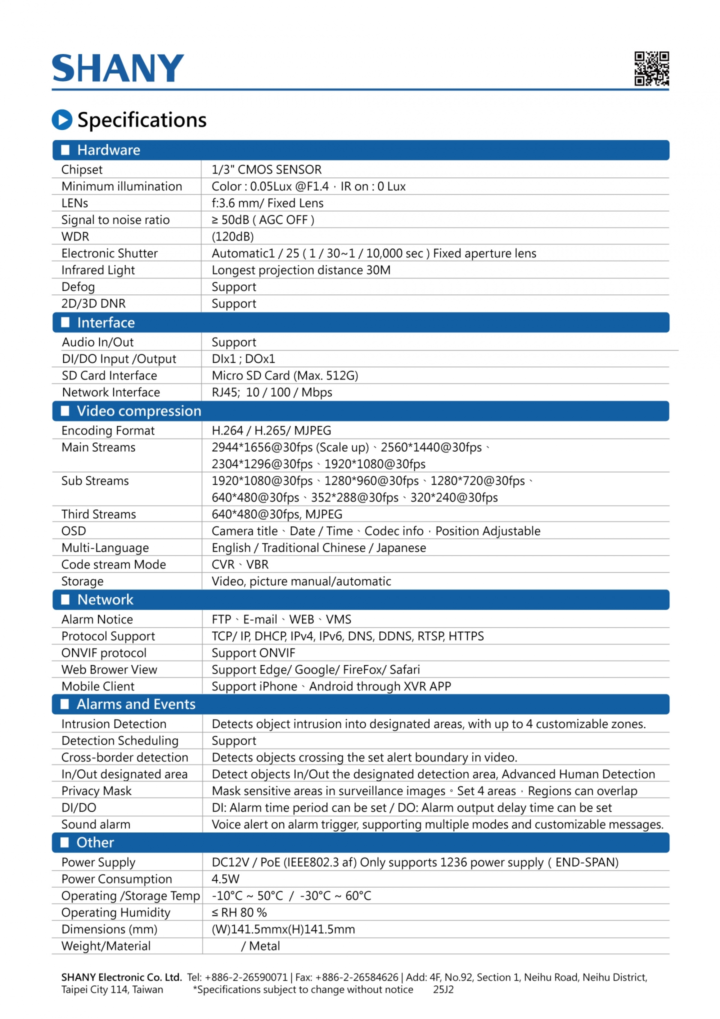 5M Two-Way Audio IR Dome IP Camera (Model: SNC-DL5536MLA2)