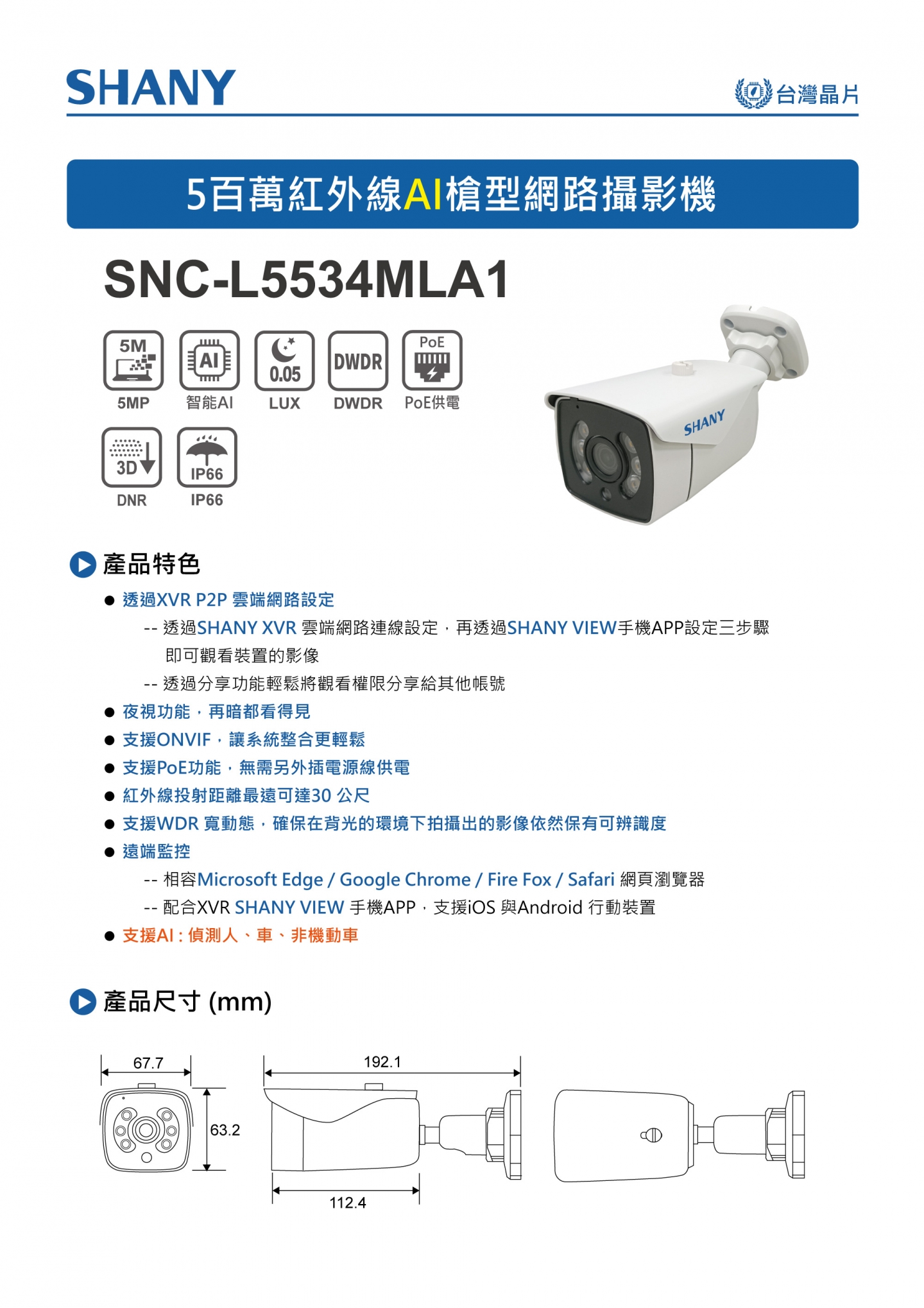 5百萬紅外線AI槍型網路攝影機 (型號: SNC-L5521MLA1 )