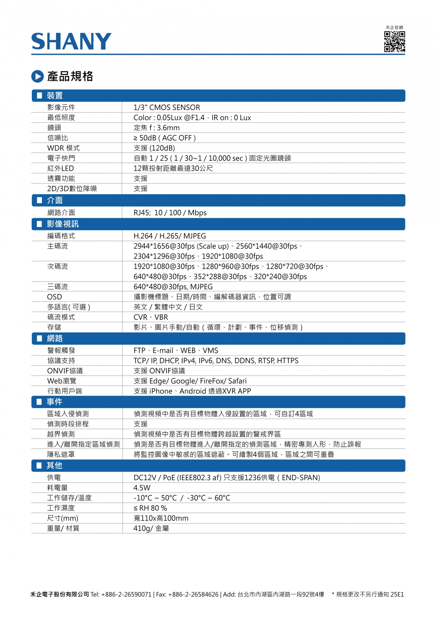 2百萬AI日夜全彩攝影機 (型號:SHC-VSL324S)