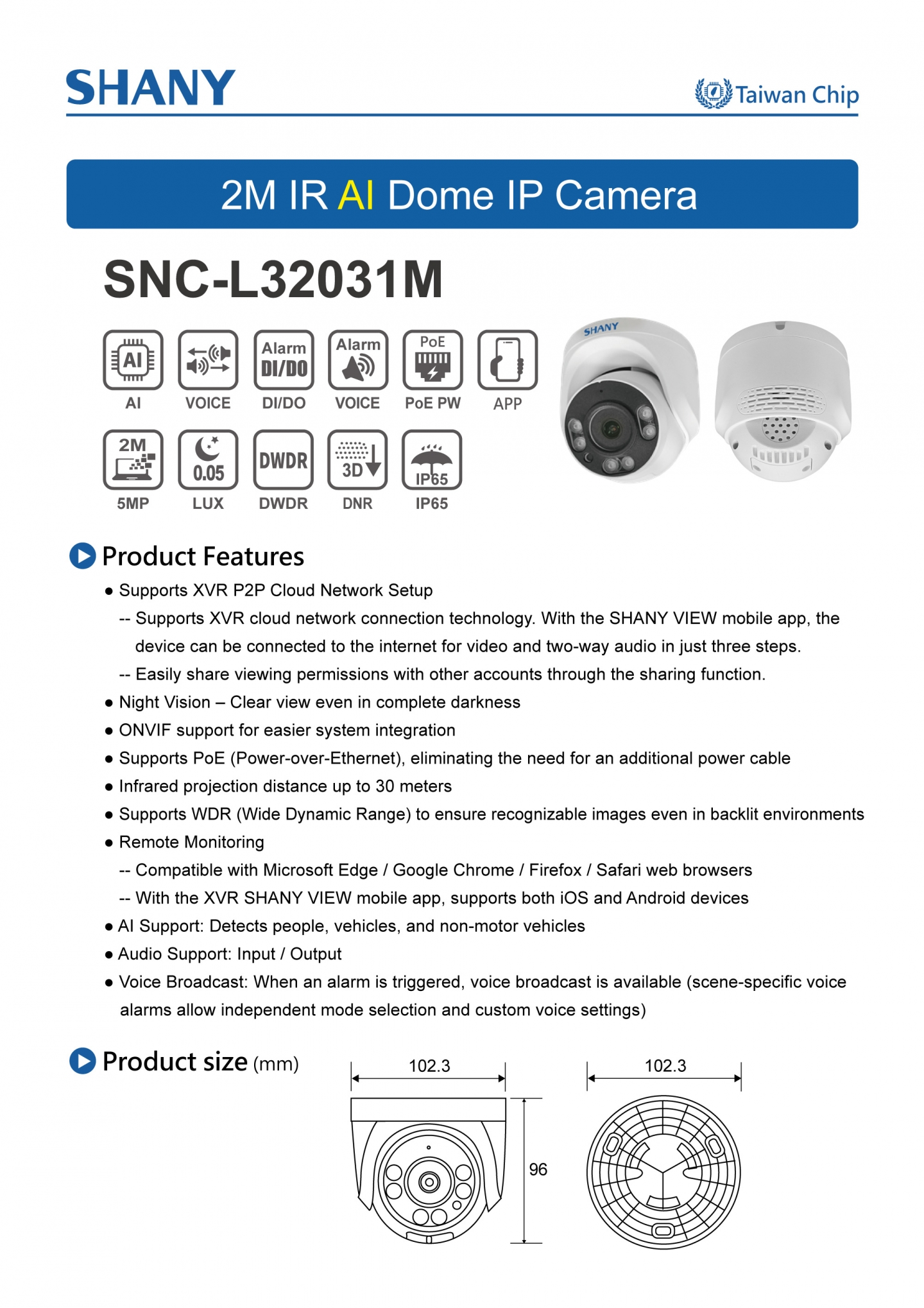 2M IR AI Dome IP Camera ( Model: SNC-L32031M )