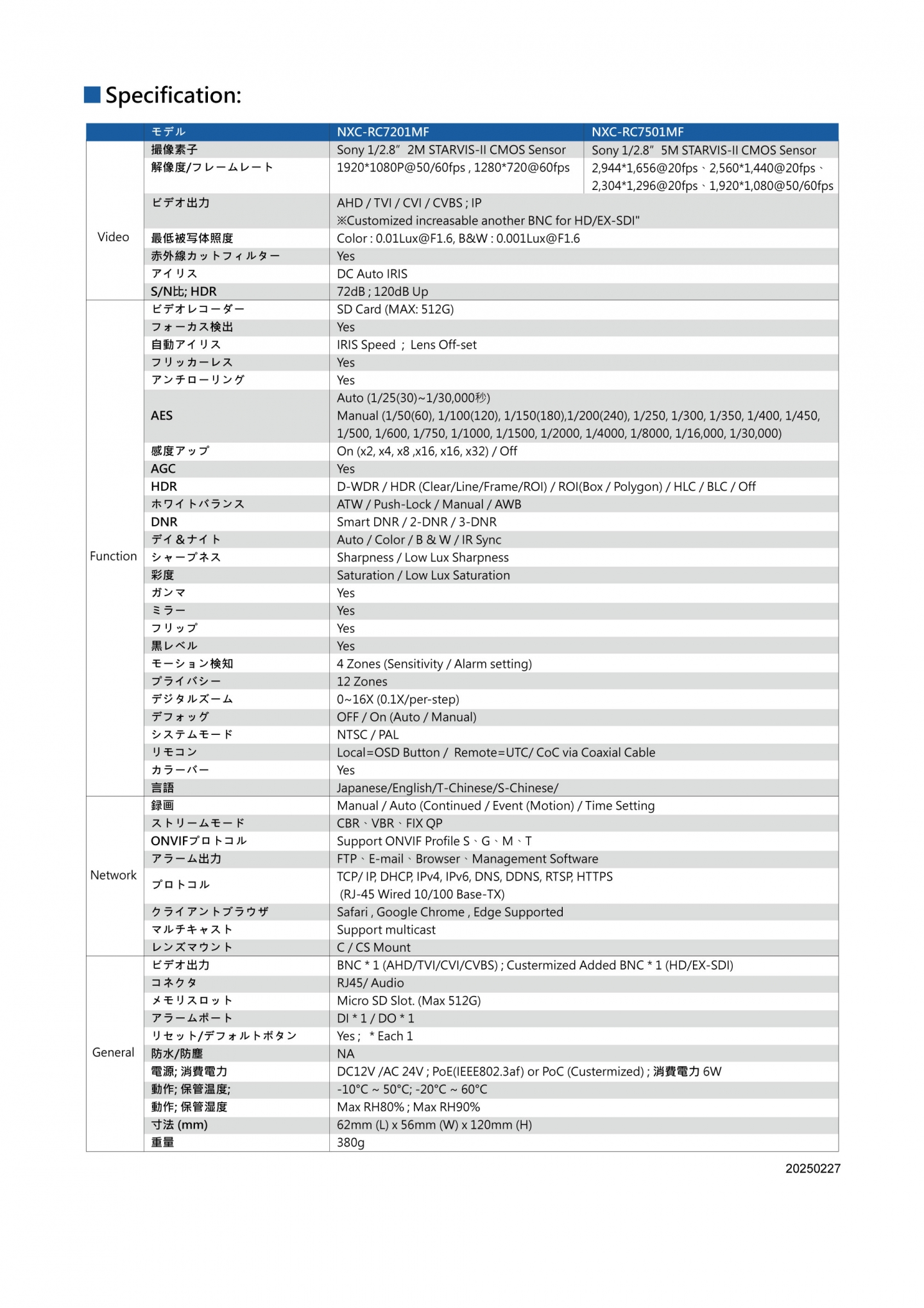 HD+IPハイブリッドカメラ あらゆる防犯監視 システムの構築に最適 (Model : NXC-RC7201MF/ NXC-RC7501MF)