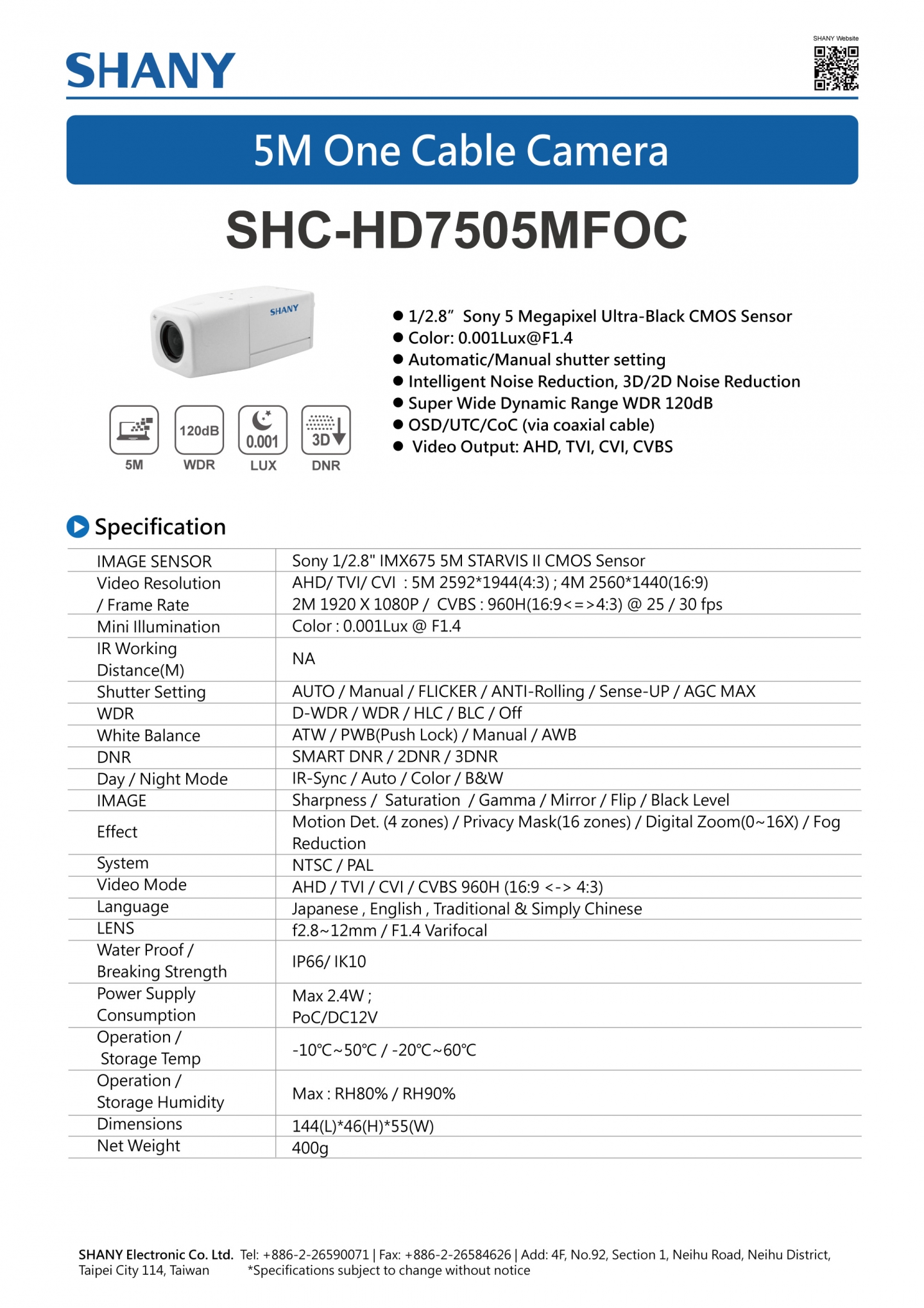 5M HD One Cable Camera ( Model : SHC-HD7505MFOC )