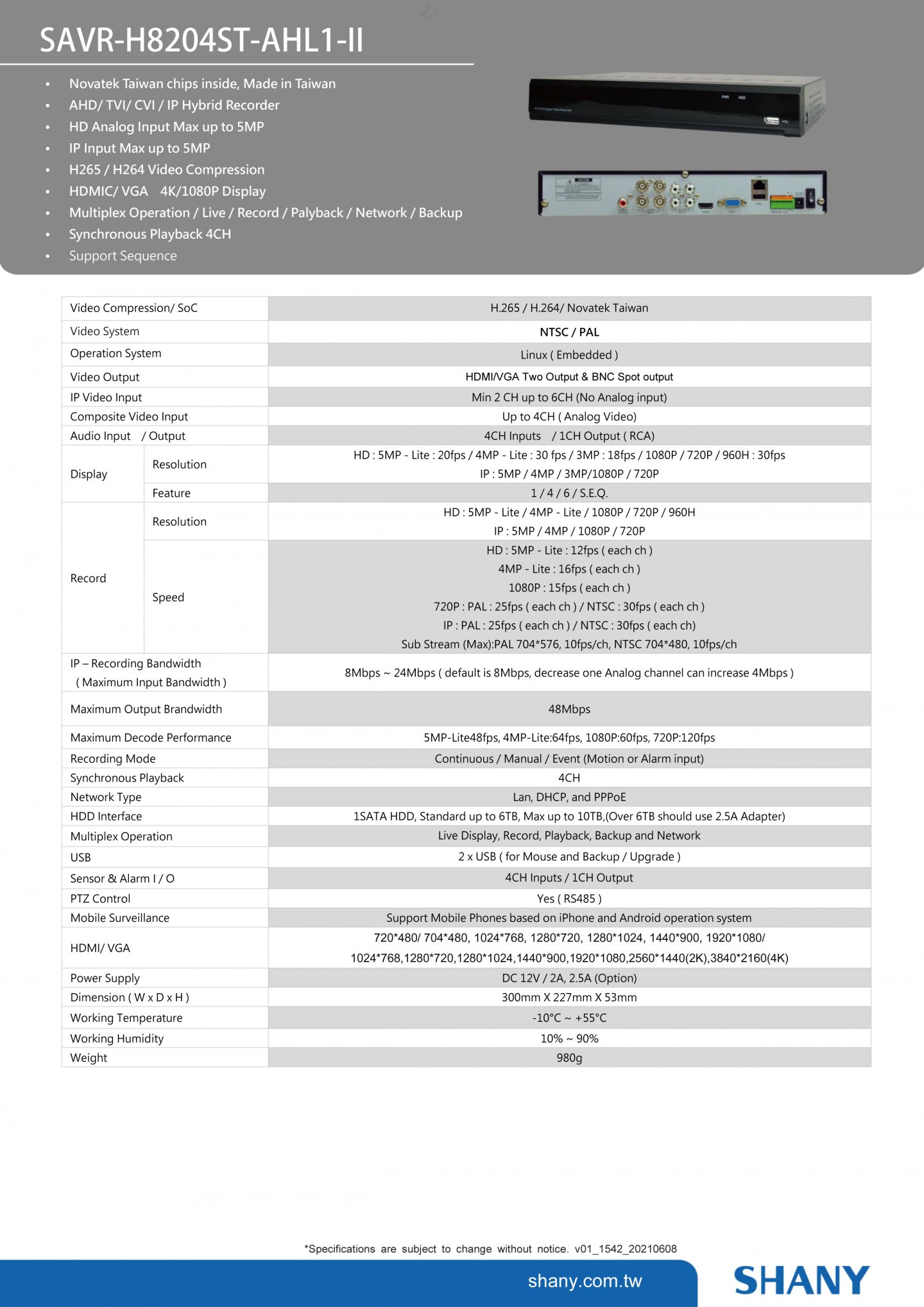 AHD/ TVI/ CVI / IP Hybrid Recorder