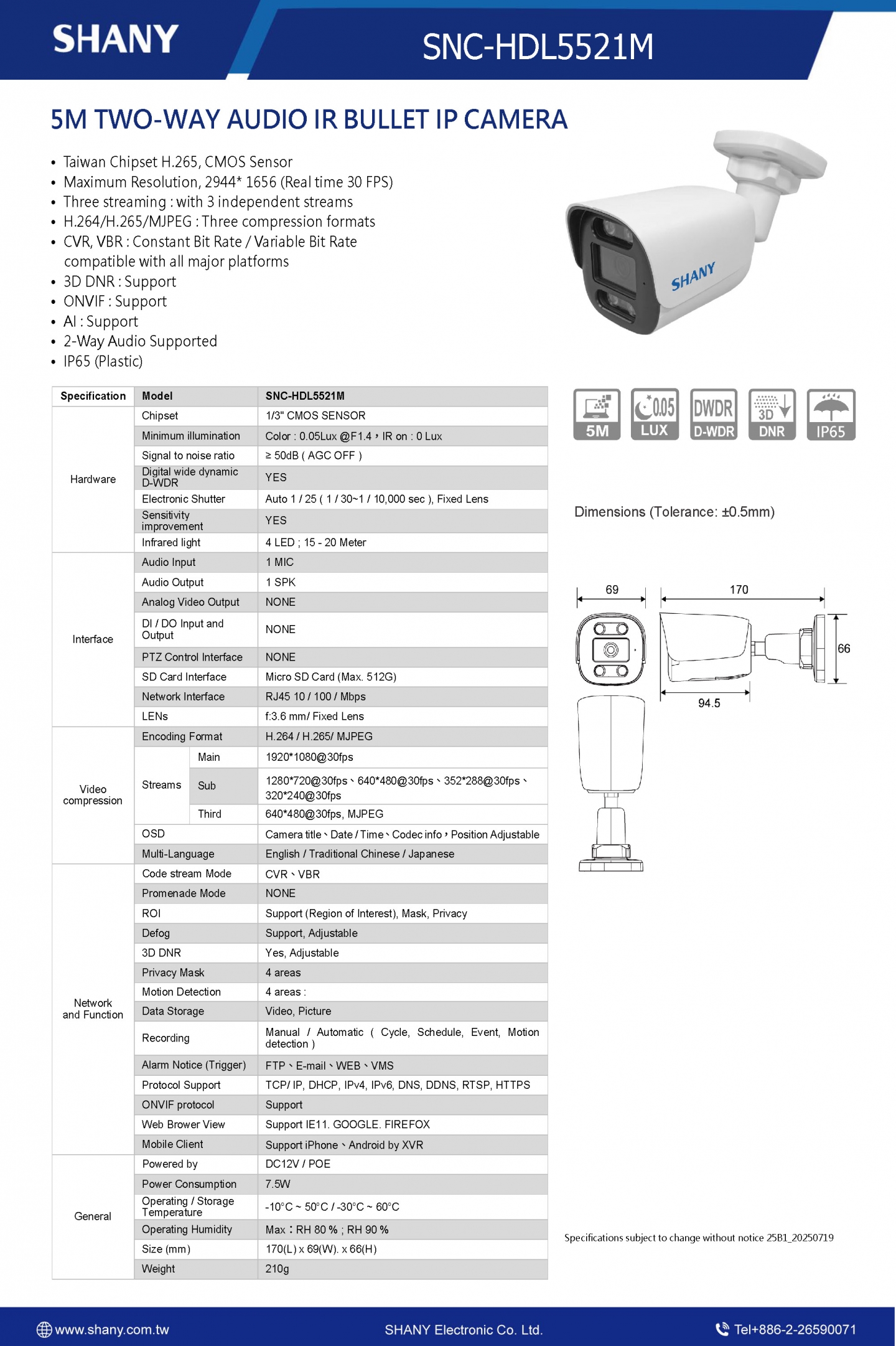 SNC-HDL5521M 5M TWO-WAY AUDIO IR BULLET IP CAMERA