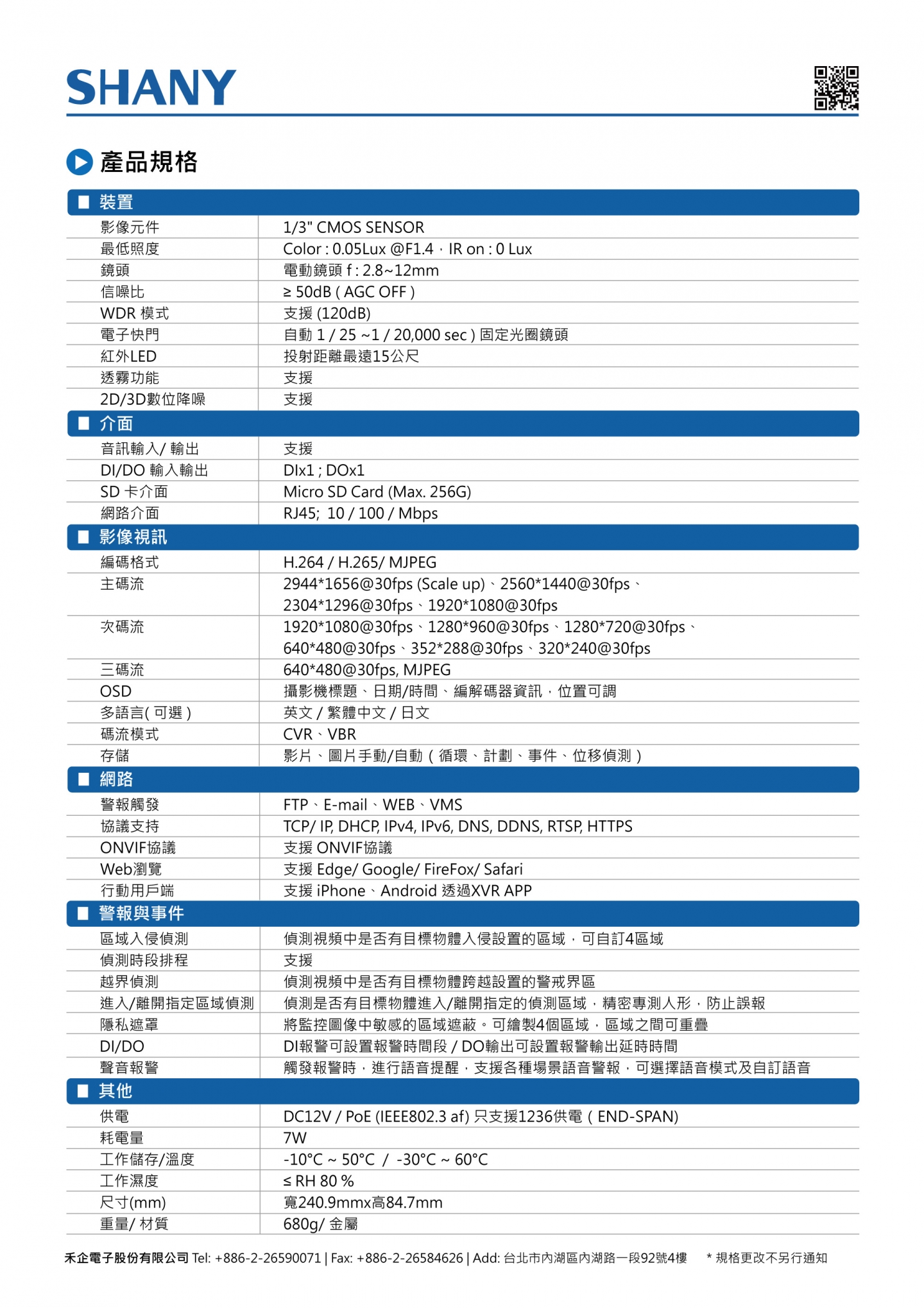 2百萬AI日夜全彩攝影機 (型號:SHC-VSL324S)