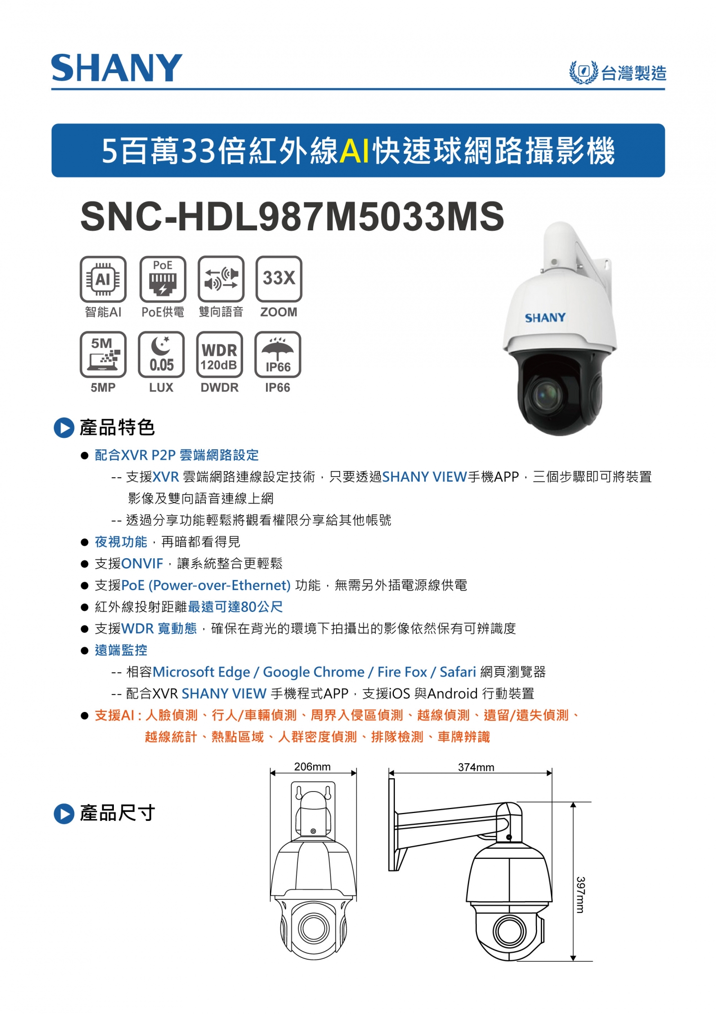 5百萬33倍紅外線AI快速球網路攝影機 (型號: SNC-HDL987M5033MS)