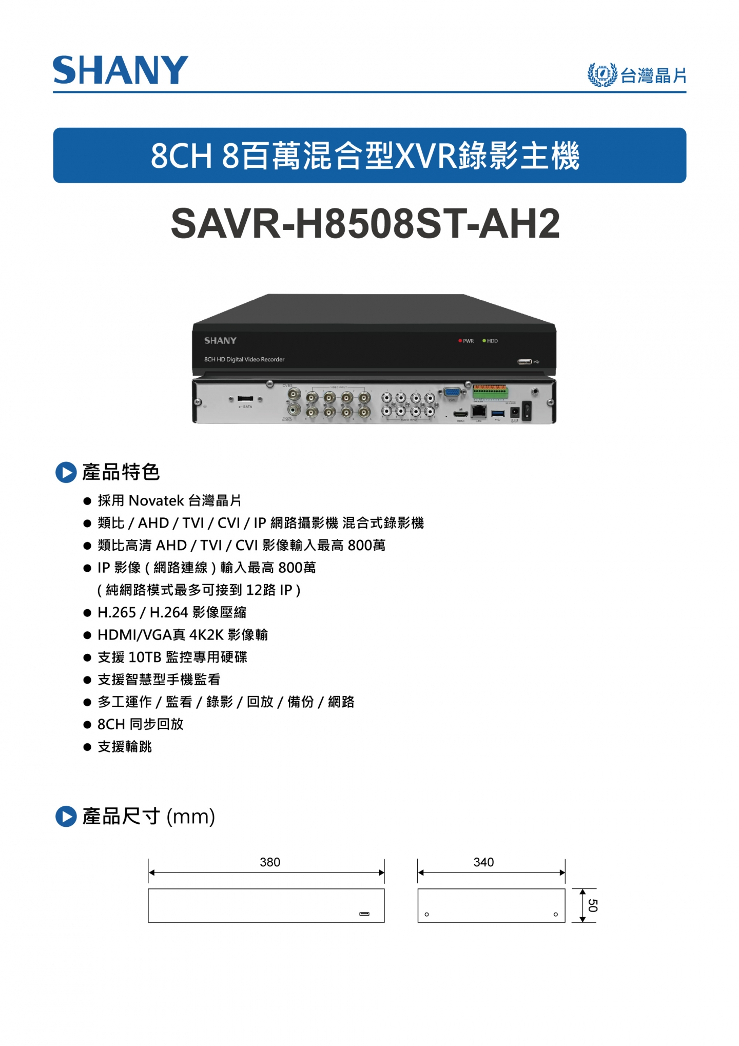 8CH 5百萬混合型 XVR錄影主機 (型號:SAVR-H8208ST-AHL1)