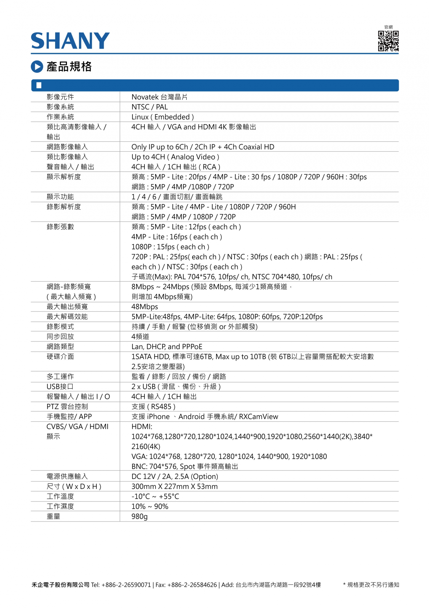 4CH 5百萬混合型XVR錄影主機 (型號:SAVR-H8204ST-AHL1)