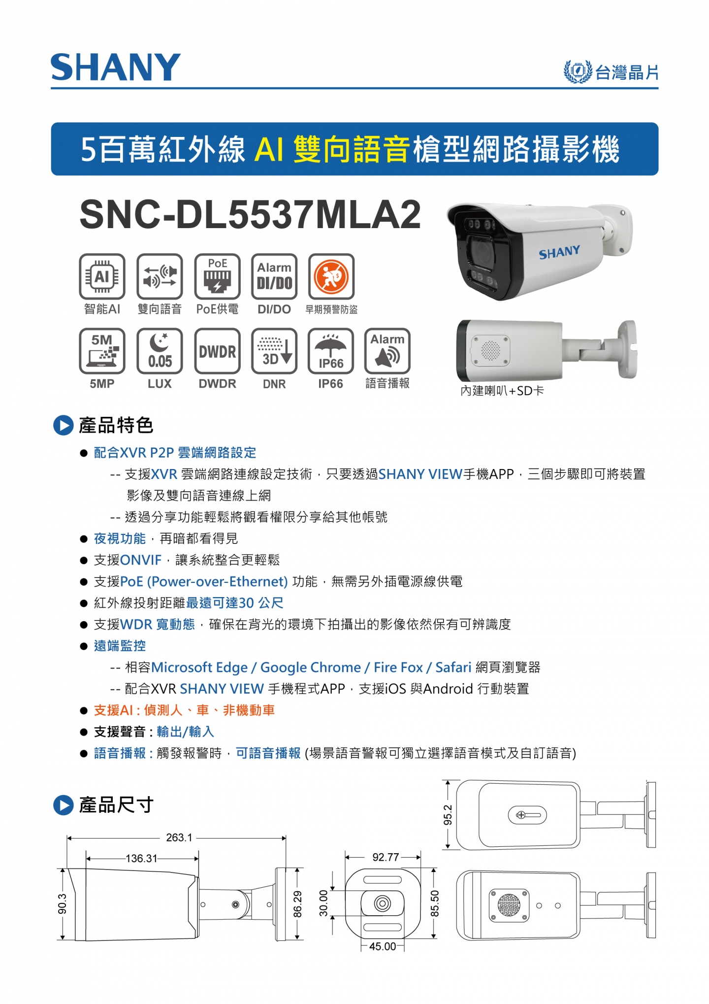 5百萬紅外線 AI 雙向語音槍型網路攝影機 (型號: SNC-DL5537MLA2)