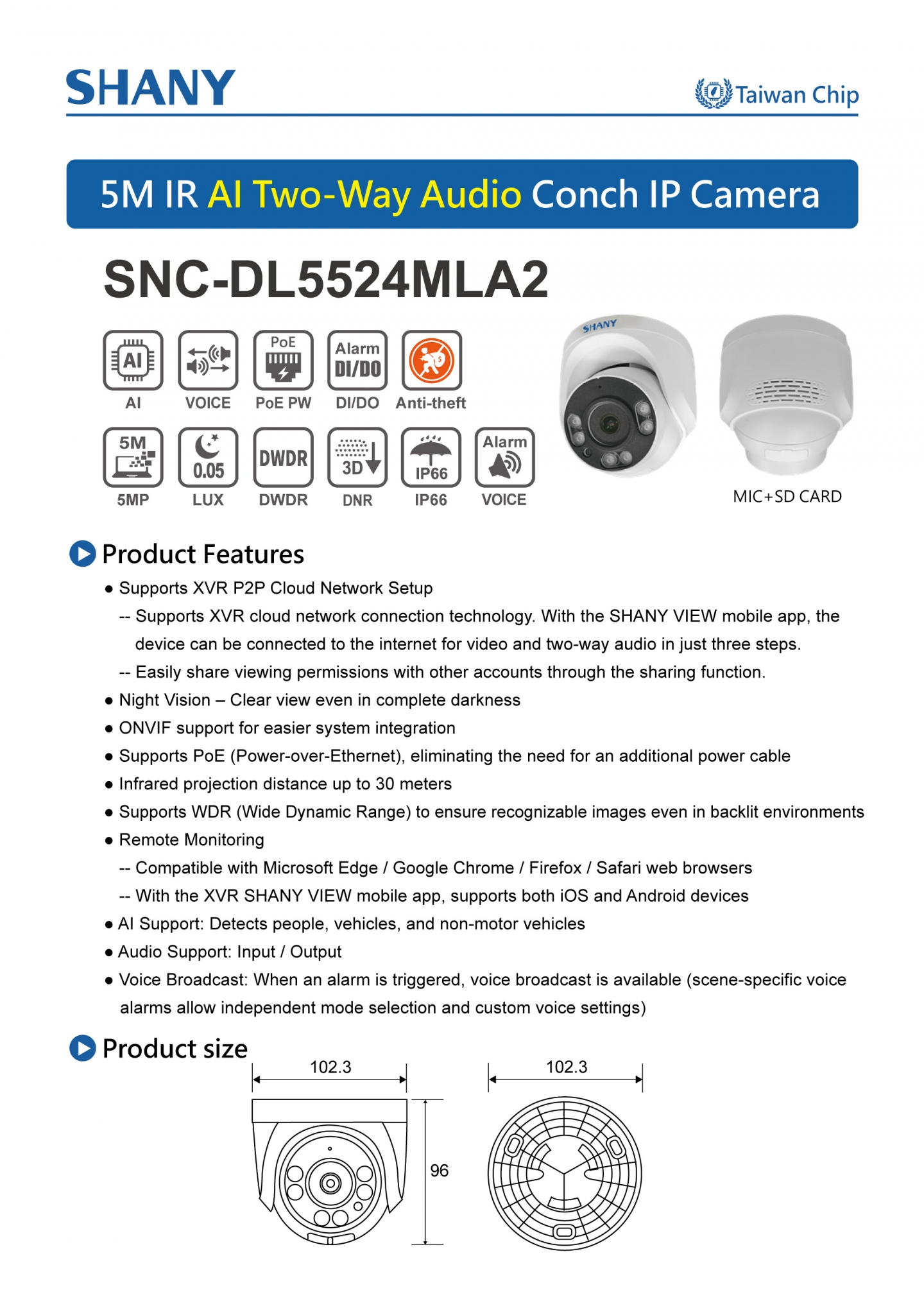 5M IR AI Two-Way Audio Conch IP Camera (Model: SNC-DL5524MLA2)