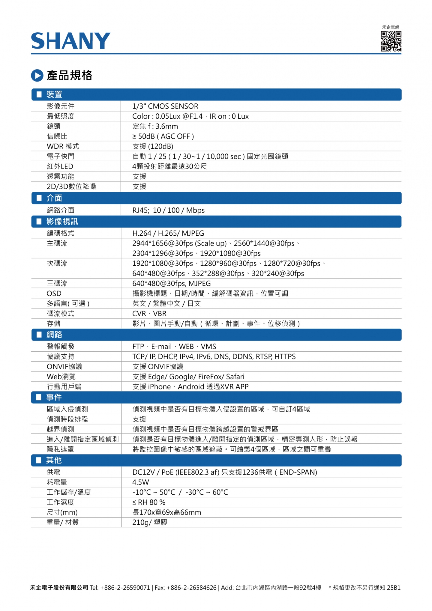 2百萬AI日夜全彩攝影機 (型號:SHC-VSL324S)