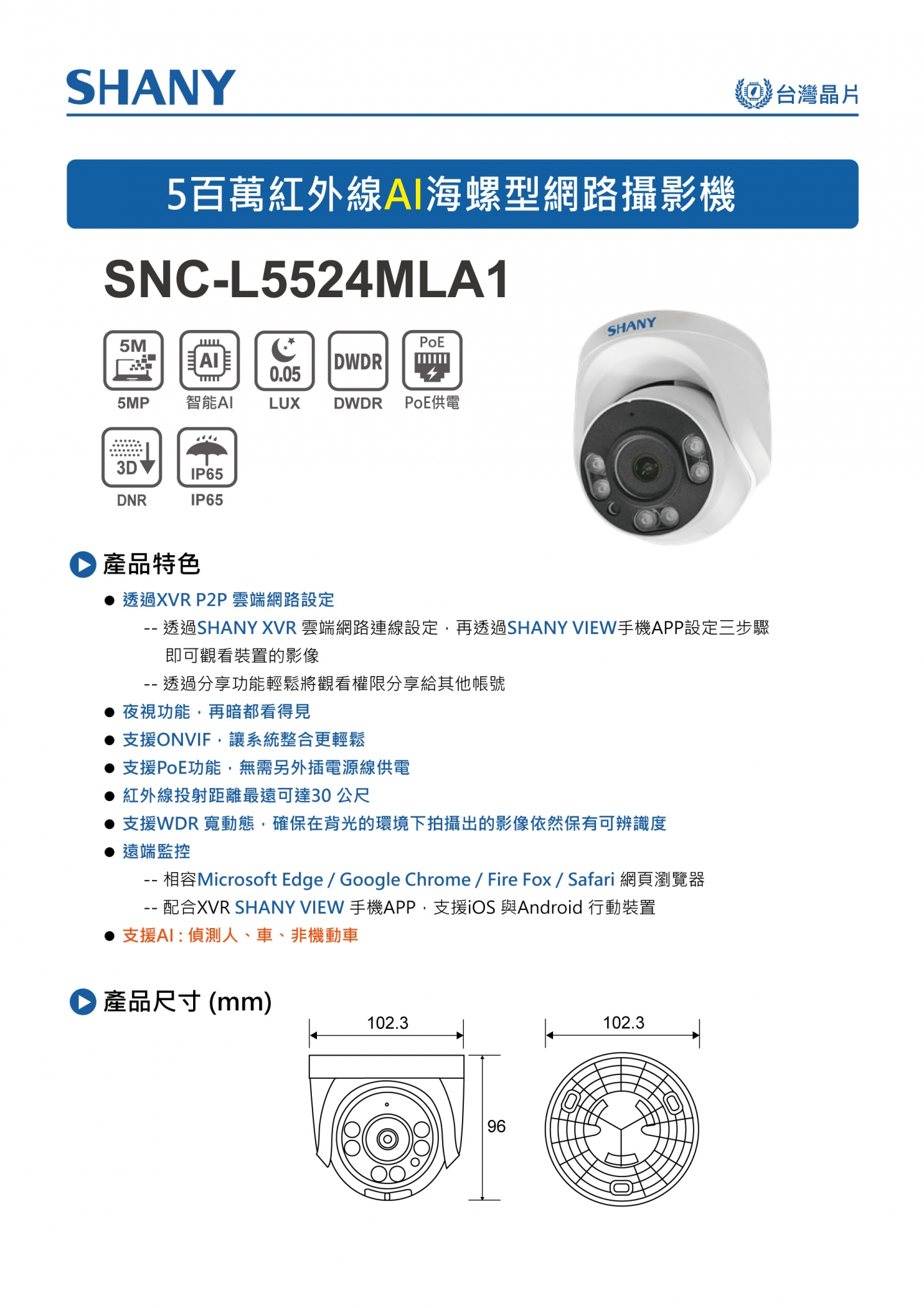 5百萬紅外線AI雙向語音半球型網路攝影機 (型號: SNC-L5532MLA2)