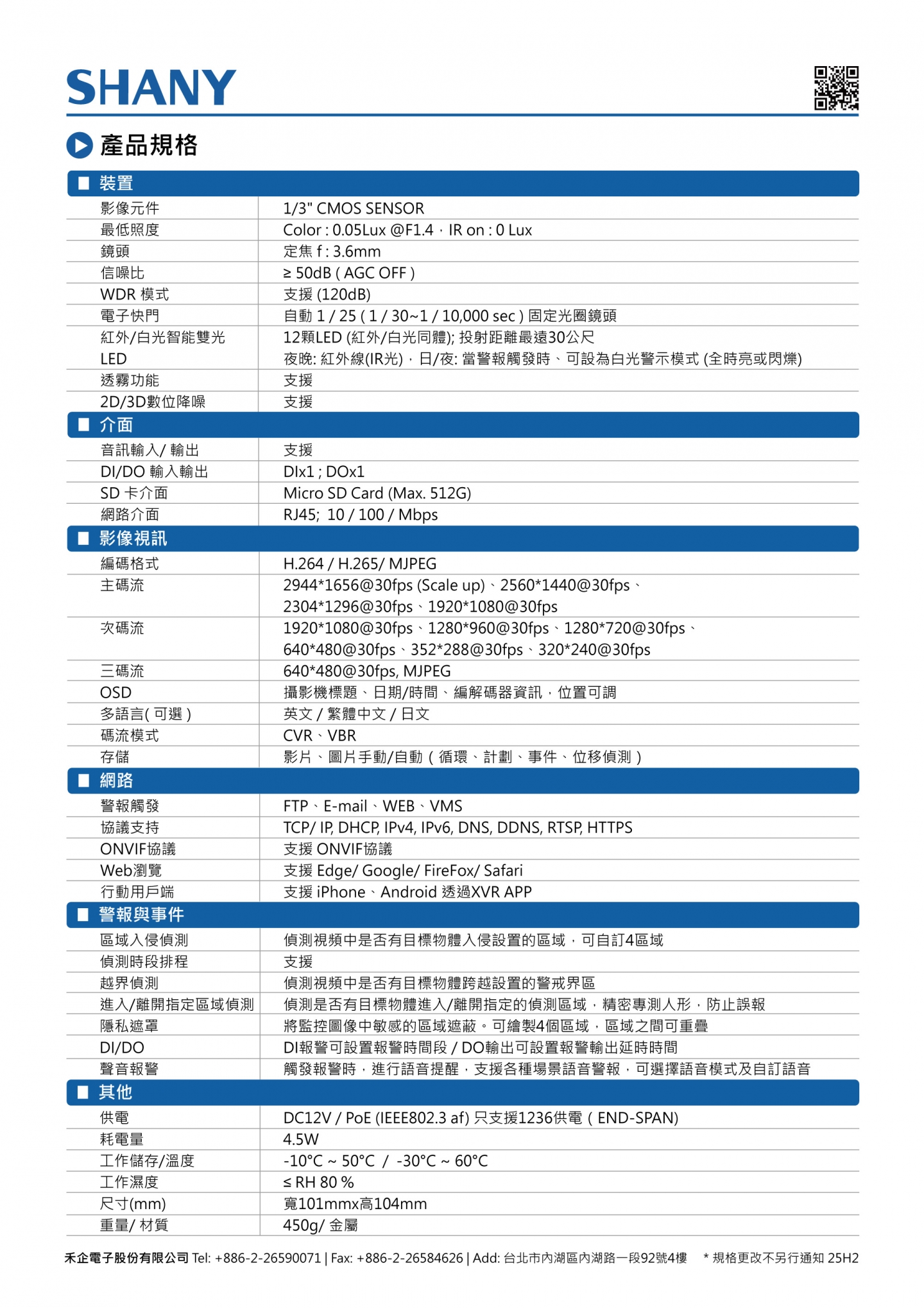 2百萬AI日夜全彩攝影機 (型號:SHC-VSL324S)