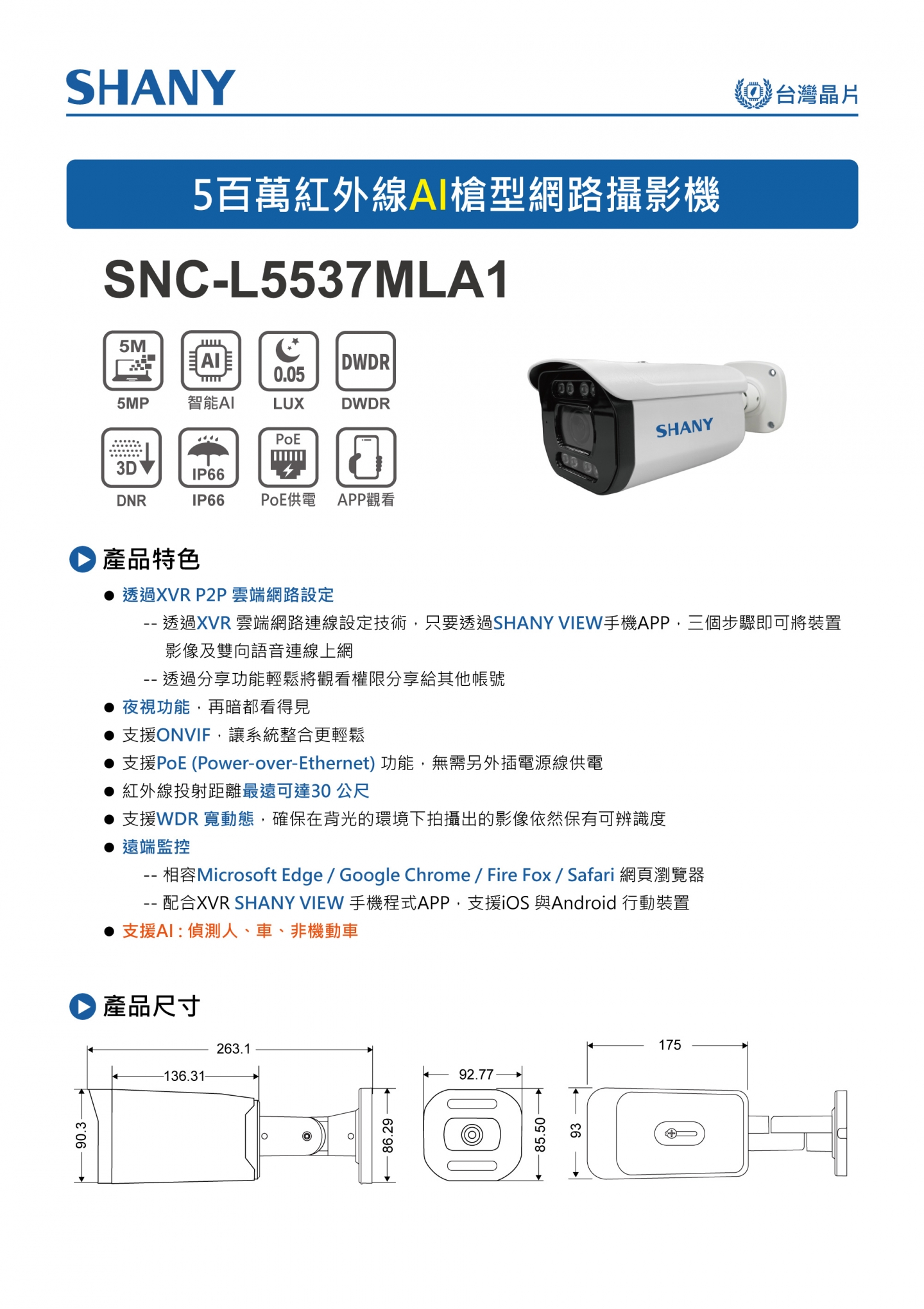 5百萬紅外線AI槍型網路攝影機 (型號: SNC-L5537MLA1)