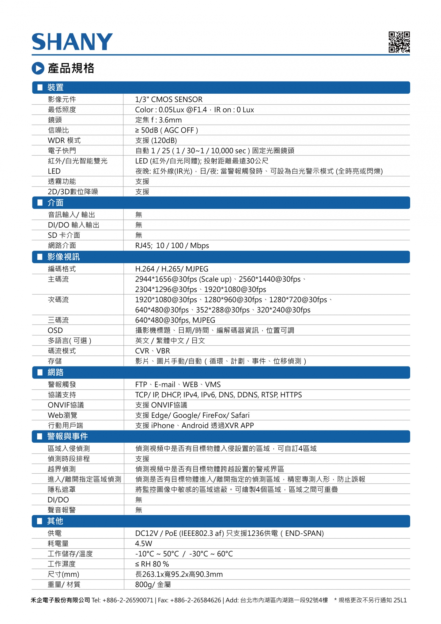 2百萬AI日夜全彩攝影機 (型號:SHC-VSL324S)